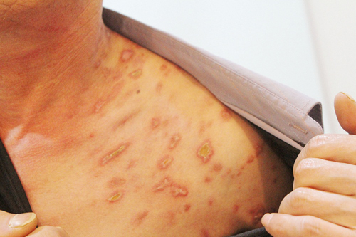 대상포진은 과거 수두를 앓았던 경험이 있거나 수두 백신을 맞은 뒤 신경절에 잠복해 있던 수두·대상포진 바이러스가 면역력이 약해진 틈을 타 활성화돼 발생한다. 초기 증상으로는 몸이 으슬으슬 떨리는 오한, 발열이 주로 나타난다. 하지만 감기몸살이나 명절증후군 정도로 오인하는 경우가 많아 각별한 관찰이 필요하다. 오한, 발열이 시작된 뒤 3~4일 뒤에 수포가 띠모양으로 무리지어 나타나거나 가려움증이나 해당 부위에 극심한 통증이 생긴다.
