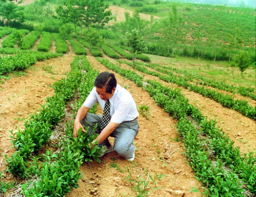 | 아모레퍼시픽 창업자인 고 서성환 전 회장이 지난 1979년 서귀포시 도순동 황무지를 개간해 차밭을 일구고 있다. 아모레퍼시픽 제공 |