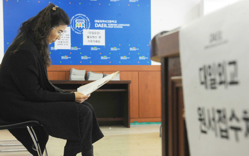 | 외국어고 자기소개서는 2단계 면접 문항의 주요 소재로 활용되므로 스스로 감당하기 어려운 용어를 사용하는 것은 좋지 않다. 문장은 간결하게 하고 잦은 접속사 사용은 피하는 게 좋다. 사진은 한 학부모가 외국어고 원서접수처에서 모집요강을 살펴보고 있는 모습. 세계일보 자료사진 |