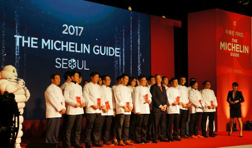 세계적인 권위를 가진 레스토랑 평가서 '미슐랭 가이드 서울 2017'이 7일 공식 발간됐다. 전세계 28번째로, 아시아 국가로선 일본, 싱가포르, 중국에 이어 4번째다. 고급 한식당 '가온'과 '라연'의 미슐랭 가이드 최고 등급인 3스타 식당에 선정됐다.