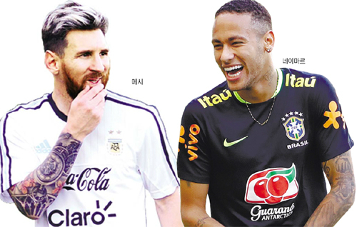 양 팀의 승부는 대표 공격수 맞대결로도 관심을 모은다. 브라질 대표 공격수 네이마르 다 시우바(24)와 아르헨티나의 ‘축구 천재’ 메시(29)는 평소 스페인 프로축구 FC바르셀로나에서 한솥밥을 먹는 돈독한 사이다. 하지만 어제의 동지가 오늘은 적이다. 이들은 이번 경기에서 상대방의 골대를 향해 발끝을 겨눈다. ESPN에 따르면 네이마르와 메시는 지난 7일 세비야전을 마치고 네이마르 전용기에 함께 올라 스페인에서 브라질로 떠났다. 비행기 안에서는 화기애애했지만 내리는 순간 적으로 돌변하는 셈이다.