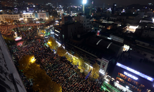 | 19일 오후 서울 광화문광장 일대에서 열린 제4차 촛불집회에 참석한 시민들이 촛불을 들고 '최순실 게이트' 진상규명과 박근혜 대통령 퇴진을 촉구하며 시위를 벌이고 있다. 공동취재단 |
