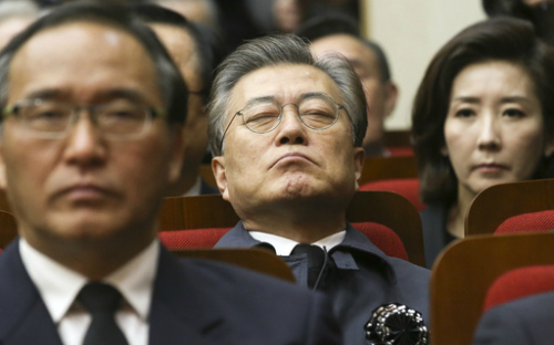 | 서울 동작구 국립서울현충원 현충관에서 열린 김영삼 대통령 서거 1주기 추모식에서 더불어민주당 문재인 전 대표가 생각에 잠겨 있다. 자료사진 |