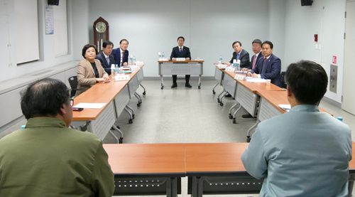 | 안종범·정호성 접견 국회 국정조사특별위원회 소속 의원들이 26일 오후 서울 구로구 남부구치소에서 안종범 전 청와대 정책조정수석(앞줄 왼쪽), 정호성 전 청와대 부속비서관(〃 오른쪽)과 비공개 면담하고 있다. 연합뉴스 |