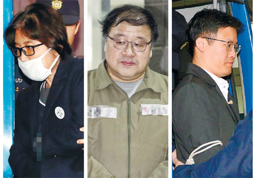 | 최순실씨와 안종범 전 청와대 정책조정수석, 정호성 전 청와대 부속비서관(왼쪽부터) |