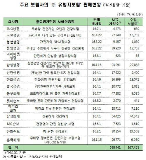보험업계 관계자는 "유병자보험의 상품이 대부분 비슷하기 때문에 막강한 판매조직을 가진 삼성화재, 삼성생명이 높은 판매 실적을 올린 것"이라고 말했다.