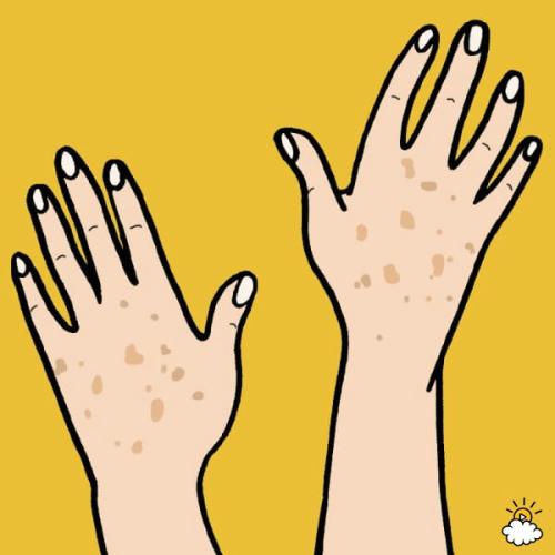 햇볕에 너무 많이 노출되면 피부에 적갈색 반점이 생길 수 있다. 이것은 일반적으로 거칠고 부풀어 있으며 약간의 비늘로 덮여있다. 만약 이러한 증상이 당신의 피부에서 발견된다면 바로 피부과 의사와 상담해야 한다. 이 상태는 광선 각화증이라고 하는데, 이것은 암으로 발전할 수 있는 징후다.