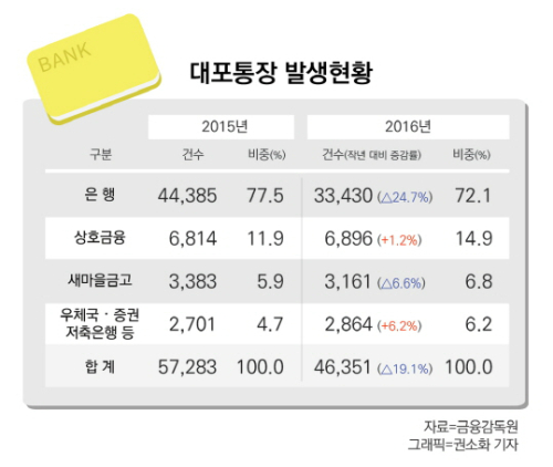 금융당국 고위관계자는 “보이스피싱에 필수적인 두 가지 도구가 대포통장과 대포폰”이라며 “이들의 뿌리를 잘라야 보이스피싱을 근절할 수 있다”고 강조했다.