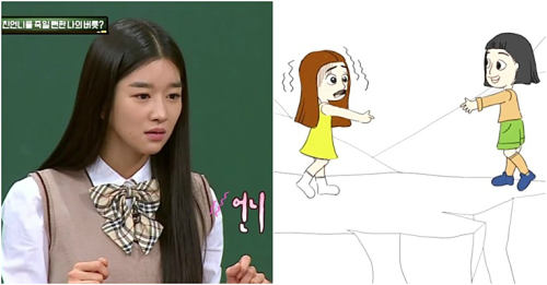 지난 4일 밤 방송된 '아는 형님'에서 서예지는 "친언니를 죽일 뻔 했던 나의 버릇은 뭘까"라고 문제를 냈다.