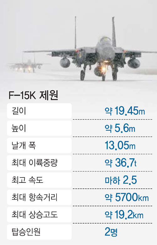 공군은 2005~2012년 F-15K 61대를 인수했는데, 2006년 6월 동해상에서 야간 훈련 중 1대가 추락해 60대를 운용하고 있다. 내년부터 F-35A 스텔스 전투기 40대가 순차적으로 도입되는 상황에서도 F-15K는 앞으로 20여 년 이상 최일선에서 공군 정밀타격능력을 상징하는 전투기로 남을 전망이다.