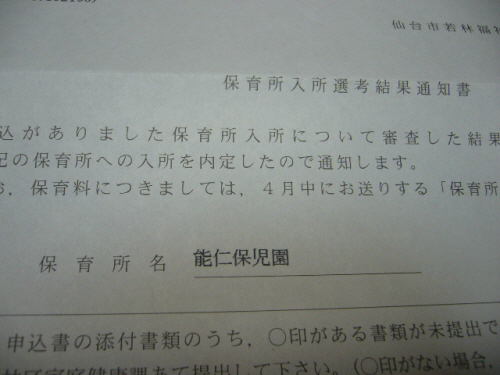| 일본 소셜미디어(SNS)에 올라온 보육원 입학허가서 사진. 이 통지서가 SNS 등에 게재되면 다른 어머니들의 축하 메시지가 이어진다. 사진=SNS 캡처 |