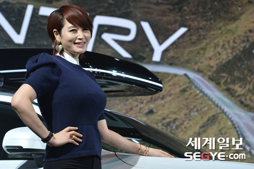 배우 김혜수가 21일 오전 서울 장충동 신라호텔에서 열린 볼보 자동차의 신차발표회에 참석해 포즈를 취하고 있다.