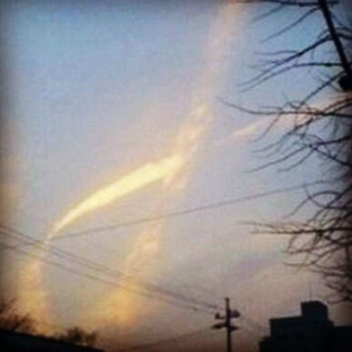 23일 강원도 원주시 단구동에서는 세월호 희생자를 추모하는 노란 리본 모양의 선명한 구름이 나타났다.