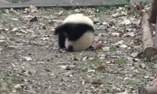장난감을 돌려달라는 듯 사육사 뒤를 쫓아가는 판다. 하지만 끝내 장난감을 돌려받지 못하자 갑자기 분노의 앞구르기를 시작했다. 장난감을 돌려달라는 판다의 시위로 보인다.