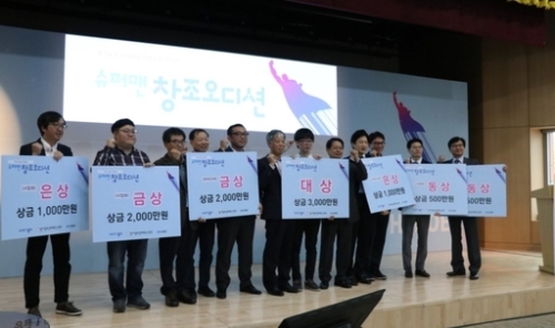 | 경기도가 지난해 실시한 ‘UP 창조오디션’ 결선에서 수상한 스타트업 대표자들이 기념촬영을 하고 있다. 경기도 제공 |