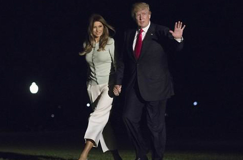 트럼프 대통령은 에어포스원 트랩에서 영접을 나온 관계자들에게 손을 흔들다가 이내 부인의 손을 잡으려 했으나 멜라니아 여사는 못 본 척하며 거절하는 장면이 TV 카메라에 잡혔다. 순간 어색한 기류가 흘렀으나 둘은 태연하게 트랩을 내려왔다.