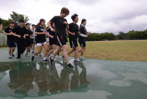 | 7일 서울 영등포구의 한 군간부시험 학원 여성 수강생들이 체련단련을 하며 구슬땀을 흘리고 있다. 이제원 기자 |