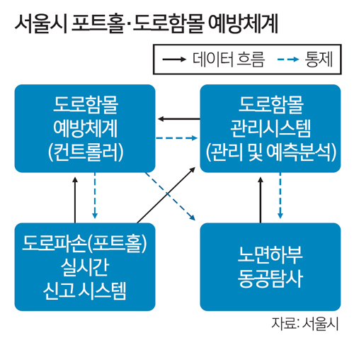 동공탐사로 축적한 데이터 등을 바탕으로 시는 지난해 2월부터 도로함몰 발생을 예측하는 관리시스템을 운영 중이다. 도로함몰 관리시스템은 도로함몰의 원인이 되는 지하철·상하수도관 등 12종의 지하시설물, 굴착공사 정보 등을 토대로 서울시 전체 도로를 탐사·관찰·안전 3개 등급으로 분류한다. 도로함몰 발생 확률이 높은 탐사 등급의 도로를 대상으로 우선 동공 탐사를 벌여 도로함몰을 막는다.