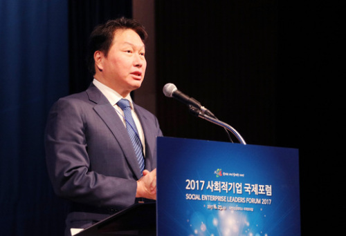최 회장은 23일 고용노동부와 한국사회적기업진흥원 주최로 서울 중구 대한상공회의소에서 열린 ‘사회적기업 국제포럼’ 기조연설에서 이같이 말했다. 최 회장은 “사회적기업이 우리나라의 주류 경제주체가 되면, 더 많은 사회적 혁신이 사회 전체로 퍼져나가 우리 사회를 획기적으로 행복하게 변화시킬 것”이라고 강조했다.