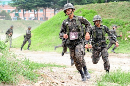 | 육군 포병부대원들이 훈련이 시작되자 사전에 정해진 위치로 달려가고 있다. 육군 제공 |