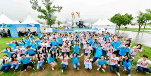 | KT가 지난 24일 오후 4시 한강시민공원에서 마련한 2018 평창 동계올림픽 ‘G-200’ 기념 행사에서 전국 대학생 100여명이 플래시몹을 진행하고 있다. KT 제공 |