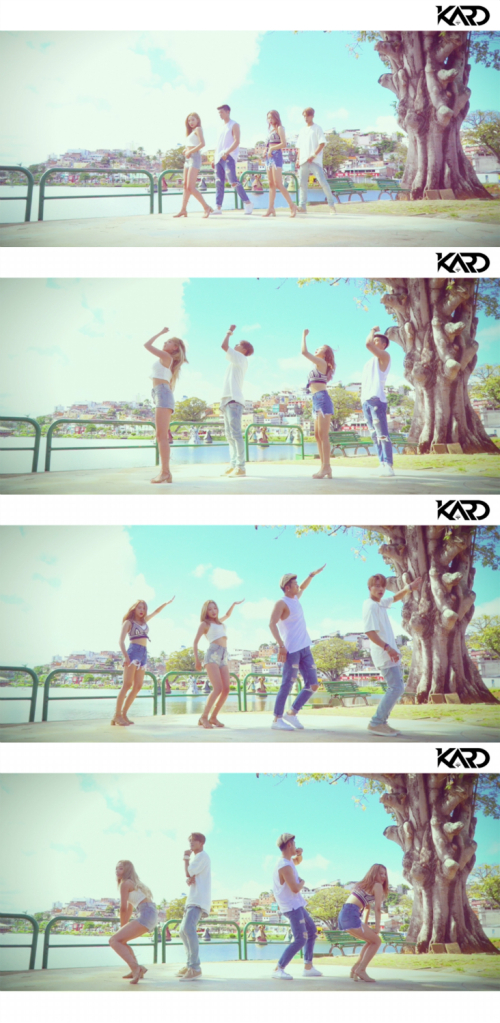 28일 낮 12시 KARD는 공식 유튜브를 통해 ‘Hola Hola’의 안무영상을 공개했다. 공개된 영상 속 KARD 멤버들은 남다른 케미와 넘치는 스웨그로 화려한 안무 퍼포먼스를 완성시켰다.