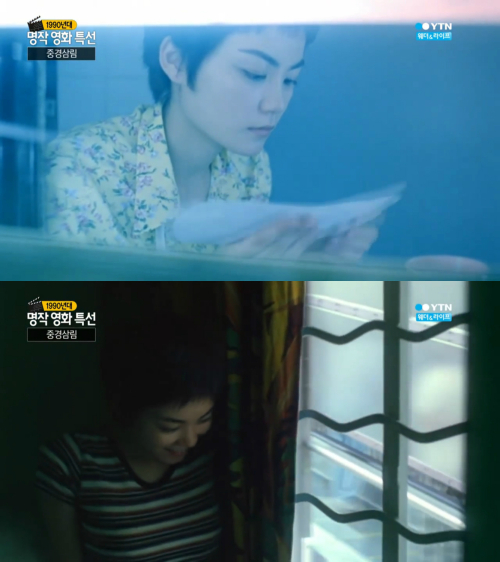 | 1994년 영화 '중경삼림'에서 '페이' 역으로 출연한 중국의 가수 겸 배우 왕페이의 모습들. 사진=YTN 캡처 |