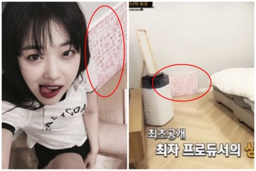 또한 이들이 제시한 다른 사진을 보면 설리는 빨간색 물감이 칠해진 캔버스 옆에서 셀카를 찍고 있는데 이 캔버스 역시 최자의 집에서 발견되며 ‘네티즌 수사대’의 수사를 빗겨나가지 못했다.