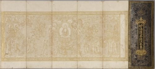 이번에 환수된 묘법연화경은 가로 12.7㎝, 세로 34.5㎝으로, 병풍처럼 접었다 펼 수 있는 절첩본이다. 책은 금니와 은니로 그린 표지에 금니로 완성한 변상도(變相圖·불교 경전 내용을 소재로 한 그림)가 붙어 있다.