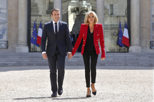 마크롱 대통령은 부인의 미국식 퍼스트 레이디 지위를 공식화하려고 추진하다가 거센 반대에 부닥쳐 사실상 철회했다. 부인은 봉급을 받지 않겠다고 주장하면서 "프랑스 국민들이 내가 정확히 어떤 일을 하고 있는지 알수 있도록" 모든 공식활동을 인터넷에 공개하겠다고 약속했다.