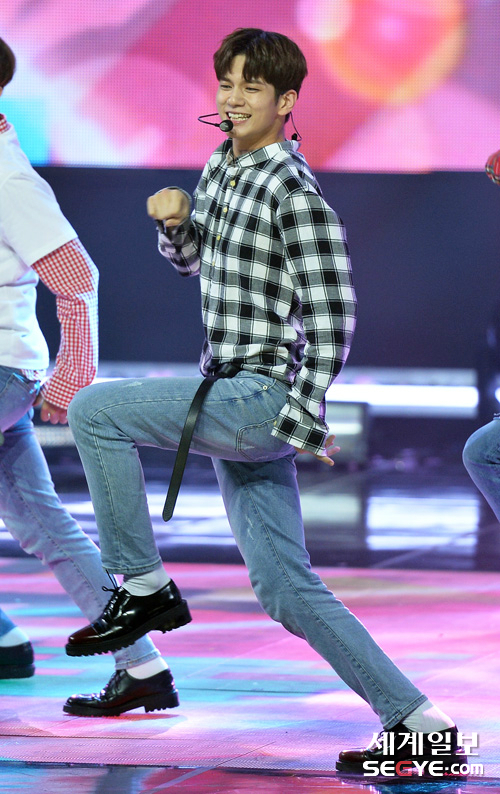 그룹 워너원 옹성우가 30일 오후 경기도 고양시 일산 MBC 드림센터에서 열린 MBC Music 쇼! 챔피언 생방송 무대에서 열띤 공연을 펼치고 있다.