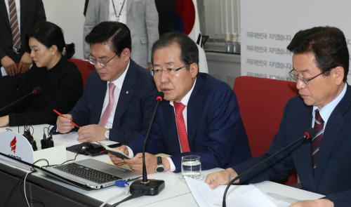 | 자유한국당 홍준표 대표가 11일 오전 국회에서 열린 최고위원회의에서 발언하고 있다. 사진=연합뉴스 |
