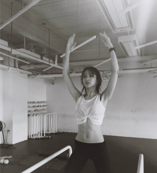 사진 속에는 복근이 드러나는 짧은 흰 티를 입고 필라테스 동작을 하고 있는 하니의 모습이 담겼다.