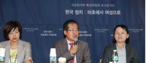 이날 오후 한국당 혁신위가 서울 마포구 소재 소규모 공연장에서 각계각층의 여성 인사들을 초청해 가진 '여성정책 혁신, 자유한국당에 바란다' 토크 콘서트에서 참석자들은 한국당이 성차별적이고 나이 든 이미지를 개선해야 함과 동시에 여성의 정치 참여 기회를 확대해야 한다고 요구했다.