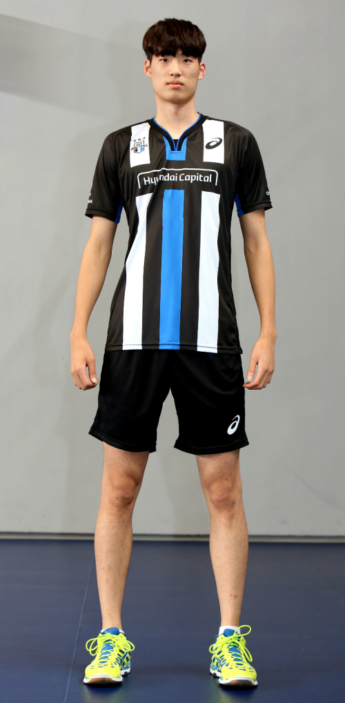 | 남자 프로배구 현대캐피탈의 박준혁이 27일 공개된 팀의 새 유니폼을 입고 포즈를 취하고 있다. 현대캐피탈 배구단 제공 |
