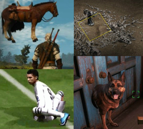 | 다양한 게임에서 발견되는 버그(게임 오류) 화면. |