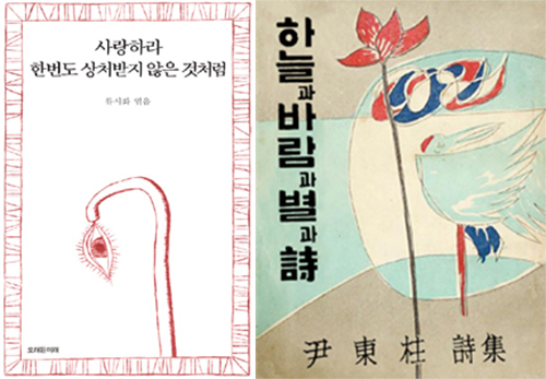 | (왼쪽부터) 류시화 시인의 ‘사랑하라 한 번도 상처받지 않은 것처럼’, 윤동주 시인의 ‘하늘과 바람과 별과 시’. |