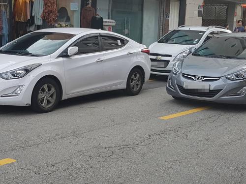 편도 1차선에 불법으로 차량이 세워진 경우도 쉽게 눈에 띄었다. 주차된 차량을 피해 차들은 아슬아슬하게 중앙선을 넘을 수 밖에 없었다. 행인들도 차량을 피해 좁은 도로 끝에 붙어 이동해야하는 상황이 연출됐다.