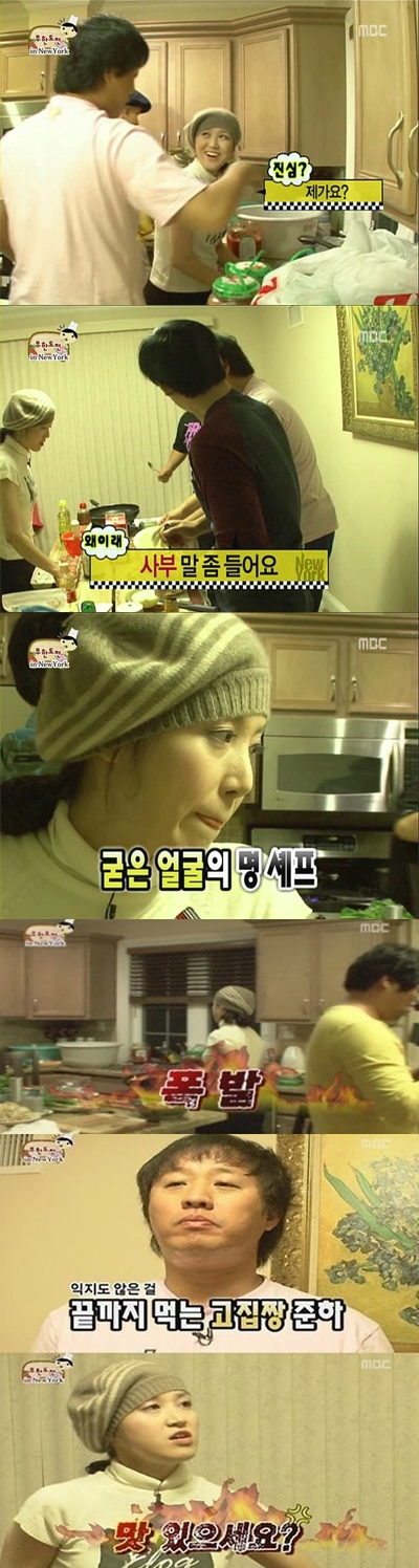 방송에서 정준하는 명 셰프에게 막힌 싱크대 하수구를 뚫어달라고 말해 명 셰프를 당황하게 하는가 하면, 김치전을 만드는 과정에서 명 셰프에게 반복해서 지적을 받자 입을 내밀고 퉁명스레 말하는 등 삐친 기색을 보였다.