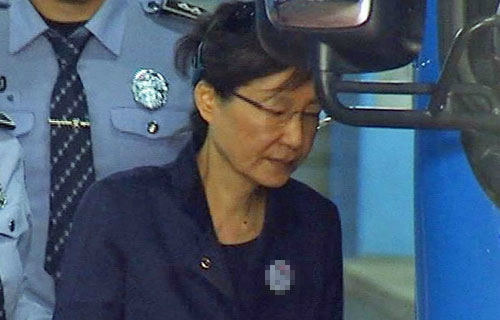 | 초췌한 朴 前 대통령 박근혜 전 대통령에 대한 2차 구속영장이 발부된 13일 안경을 쓴 박 전 대통령이 서울중앙지법에서 열린 재판에 출석한 뒤 구치소로 가기 위해 호송차에 오르고 있다. 연합뉴스 |