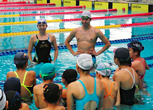 | 지난9일 일본 체육의날을 맞아 아이들에게 수영을 가르쳐준 수영 국가대표 아라이 히로키 선수. 출처=jiji.com |