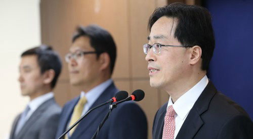 | 서울중앙지검 이진동 형사3부장이 26일 오후 서울 서초구 서초동 서울중앙지검에서 배우 송선미씨 남편 살인사건 수사결과를 발표하고 있다. 검찰 조사결과 법무법인 사무실에서 흉기에 찔려 사망한 배우 송선미씨의 남편은 자산가 할아버지의 재산을 두고 사촌간 분쟁 끝에 청부살인을 당했던 것으로 드러났다. 사진=연합뉴스 |