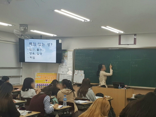 | 지난 9월 서울 중화고등학교에서 한 미혼모 강사가 성교육을 진행하고 있다. 서울시 제공 |