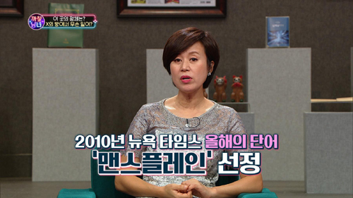맨스플레인은 남자(man)와 설명하다(explain)을 결합한 단어로, 대체로 남자가 여자에게 의기양양하게 설명하는 것을 말한다. 여자들이 더 잘 알고 있는 것은 물론이고 굳이 알고 싶지 않은 것까지 남자들은 자꾸 설명하려 한다.