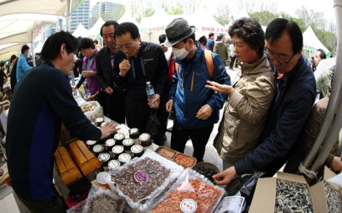 | 지난해 4월 28일부터 이틀간 서울시청 앞 서편광장에서 농특산물 직거래 행사를 실시했다. 강진군제공 |