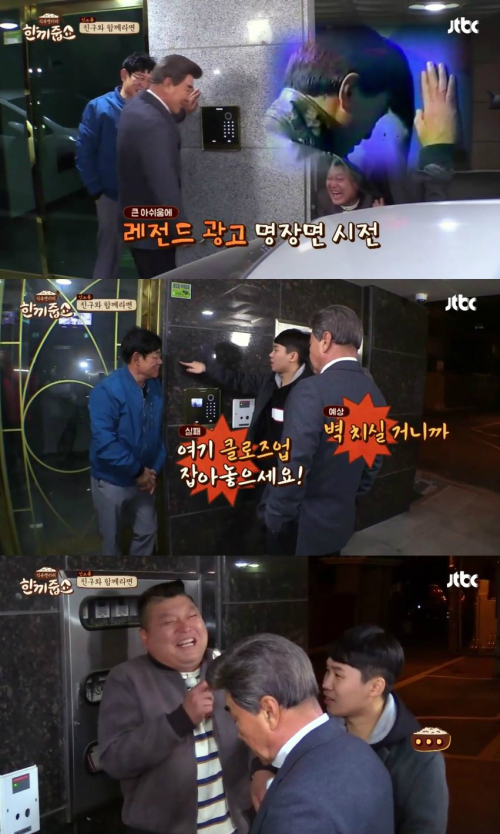 배우 이덕화(맨 아래 사진 가운데)가 JTBC 예능 프로그램 '한끼줍쇼'에 출연해 과거 자신이 출연했던 화제의 광고 속 장면을 재연했다.