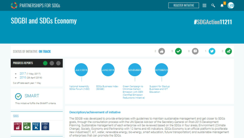 기업이 설립된 국가별 사회와 경제 환경이 모두 다르기 때문에 이들 나라의 유엔 기구와 자문기관 등에서 SDGs 17개 목표를 기준으로 개별 산출한다. 2015년 8월26일 서울에서 개최된 ‘유엔 SDGs 기념 한국 출범식’에서 주요 글로벌 기업의 최고경영자(CEO)와 임원들은 SDGBI 참여를 선언했으며, 이를 확산하는데 힘쓴다는 내용의 서명을 하였다.
