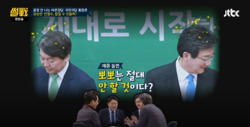 이러한 가운데 지난달 30일 방송된 JTBC 시사 프로그램 ‘썰전’에서 바른정당과 국민의당의 통합론에 대해 이야기하던 중 '노룩키스'에 대한 언급이 나왔다.