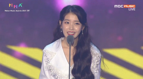 2일 열린 2017 멜론 뮤직어워드에서 대상 3개 부문 중 하나인 ‘올해의 앨범상’을 수상한 가수 아이유는 수상소감에서 유인나를 언급했다.