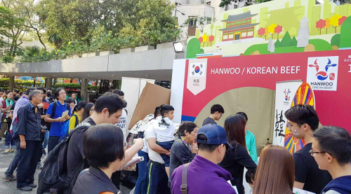 | 한우자조금관리위원회는 지난 1일부터 3일까지 홍콩 차터가든에서 열린 ‘홍콩 벨트앤로드 축제`에 참가해 홍콩 소비자를 대상으로 프리미엄 한우의 맛을 알리는 현장 홍보를 진행했다. |